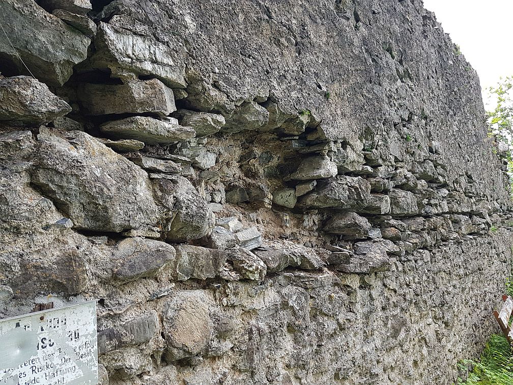 Zudem konnen wir mehrere Ausbrüche im untere Bereich der nordwestlichen Beringmauer ausfugen und damit den Einsturz der Zinnen verhindern.