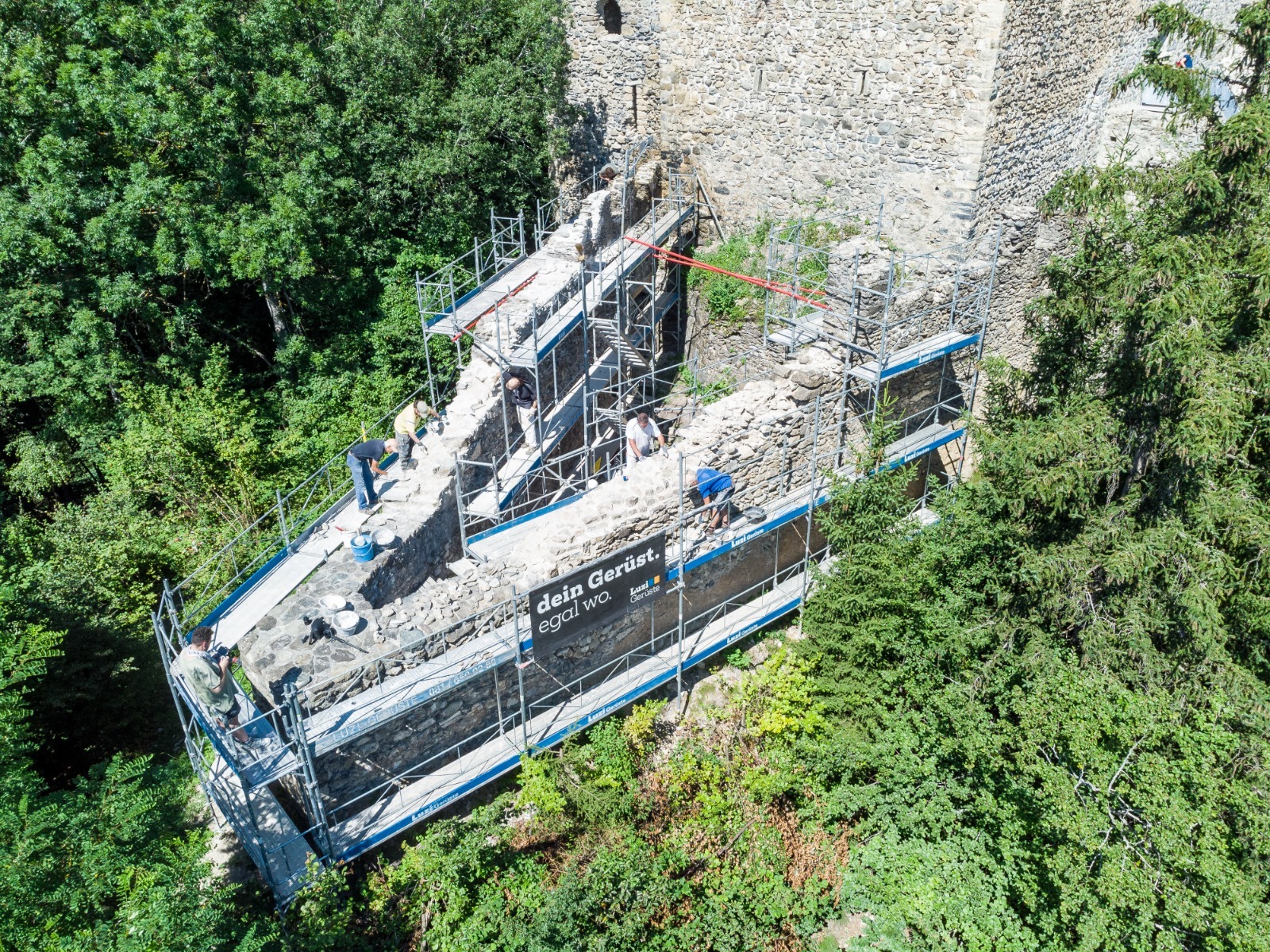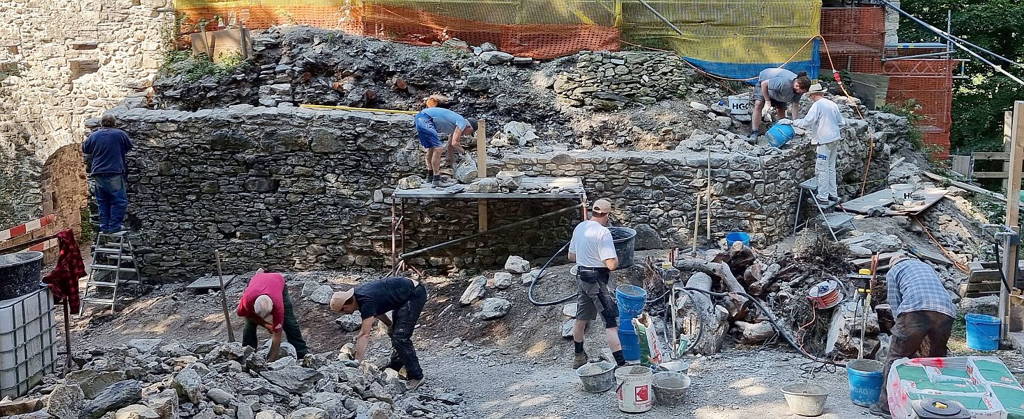 Bei unsem Arbeiteinsatz an der Burgruine Neu-Aspermont in Jenins, wurde die Sicherung des Palais abgeschossen.